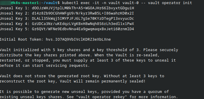 kubectl exec -it -n vault vault-0 -- vault operator init