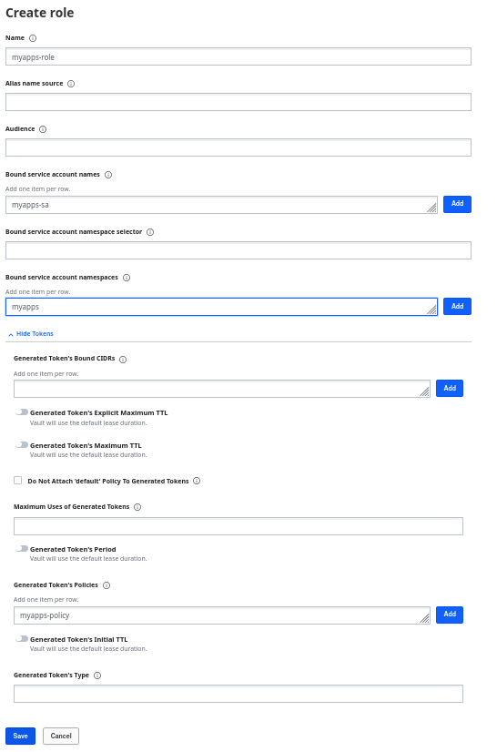 Sekarang kita akan menggunakan pods dan menggunakan annotation vault untuk melakukan inject ke pods. Pada tahap sebelumnya kita menggunakan service account myapps-sa.