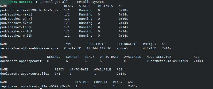 kubectl apply -f https://raw.githubusercontent.com/metallb/metallb/v$MetalLB_RTAG/config/manifests/metallb-native.yaml
