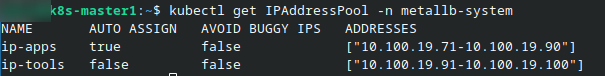 • ip-apps -> Kita membuat pools untuk kebutuhan aplikasi, dan kita enable untuk autoAssign