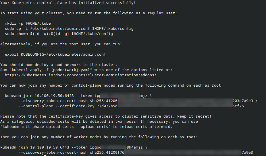 sudo kubeadm init --pod-network-cidr=10.248.0.0/14 --service-cidr=10.244.0.0/14 --control-plane-endpoint=10.100.19.100 --upload-certs