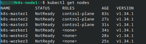Karena semua nodes sudah bisa pengecekan nodes, untuk kedepannya kita akan menggunakan salah satu nodes aja untuk konfigurasi agar cluster ready