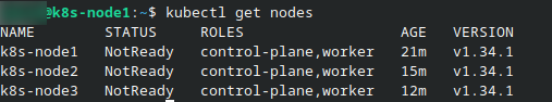 Jika muncul seperti diatas, seperti yang terlihat NoSchedule, maka node ini tidak akan menjadi host pods. Kita harus hapus agar pod bisa schedule ke node tersebut. Abaikan not-ready, karena itu akan ada ditahap selanjutnya.