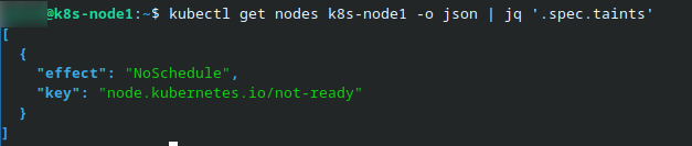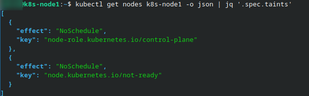 kubectl get nodes k8s-node1 -o json | jq '.spec.taints'