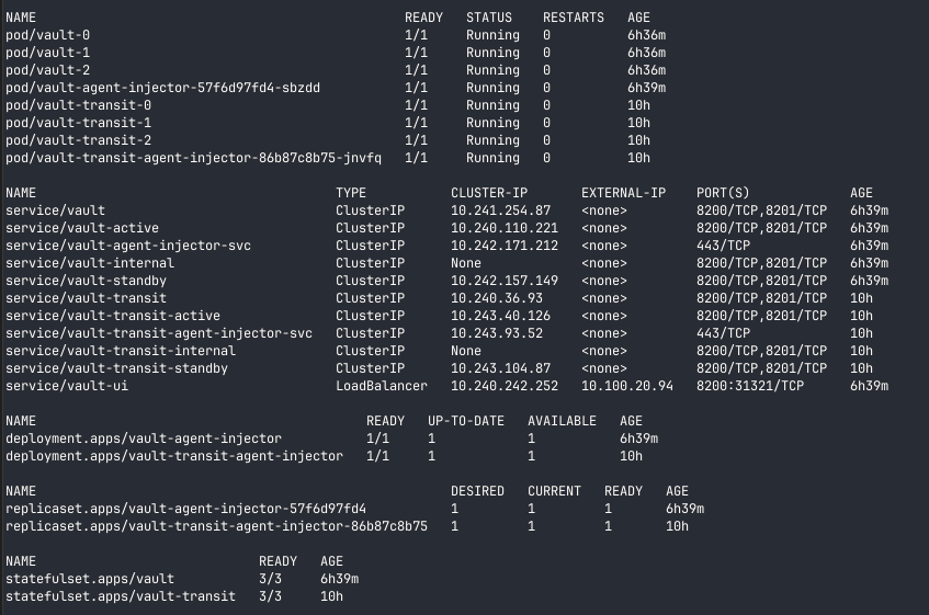 kubectl exec -n vault vault-transit-1 -- vault operator raft join http://vault-transit.vault:8200