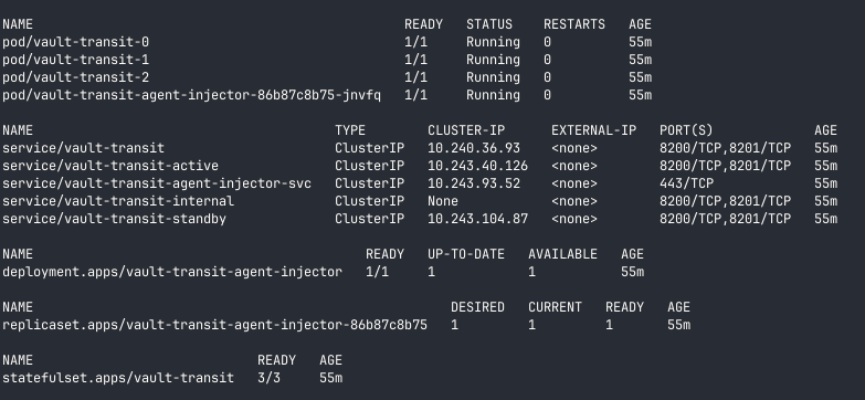 kubectl exec -n vault vault-transit-2 -- vault operator raft join http://vault-transit.vault:8200